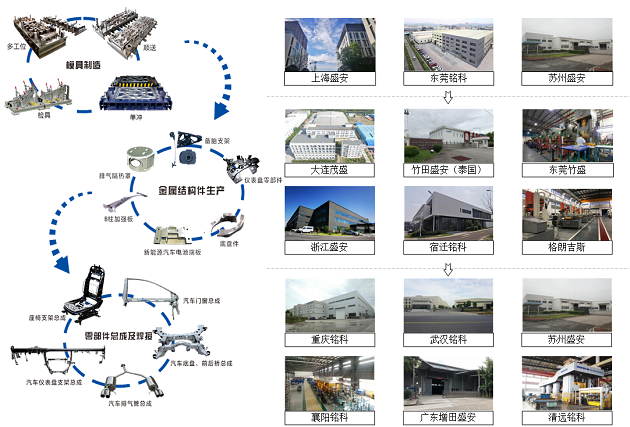 集團公司初創(chuàng)于2003年,以經(jīng)營消費電子相關的模具及零部件起步,于2008年前后進入汽車零部件領域并獲得客戶一致認可,相關業(yè)務逐步彰顯規(guī)模,2011年起集團公司汽車零部件業(yè)務進入快速增長期。在汽車領域,集團公司獲得馬瑞利(MagnetiMarelli)、海斯坦普(GESTAMP)、廣島技術、佛吉亞(Faurecia)、安道拓、凌云工業(yè)等全球知名的汽車零部件一級供應商的認可,并服務于寶馬、奔馳、奧迪、日產(chǎn)、本田、豐田、通用、小鵬汽車、賽力斯等品牌汽車,為其提供精密汽車沖壓模具及汽車零部件。業(yè)務范圍分布圍繞:美國、西班牙、法國、德國、捷克、英國、墨西哥、日本等國家。